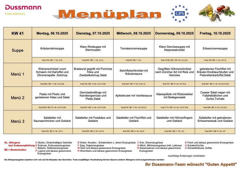 In der KW 41 (06.-12.10.2025) erwarten Sie folgende Mittagsteller im tpv: