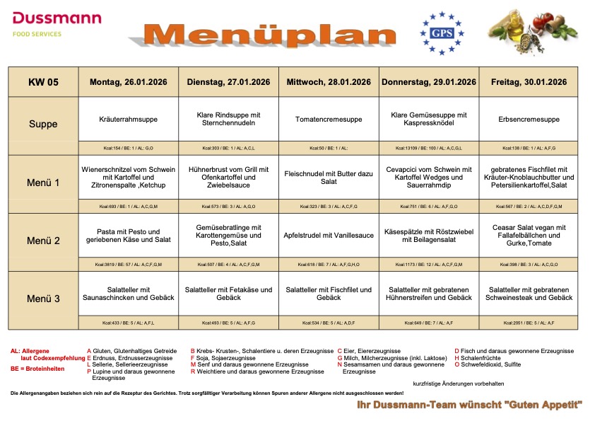 In der KW 05 (26.01.-01.02.2026) erwarten Sie folgende Mittagsteller im tpv: