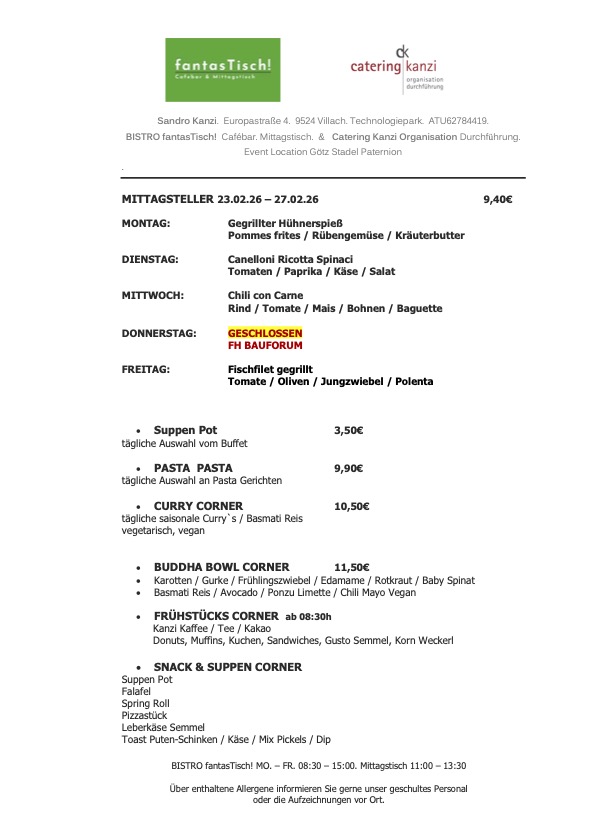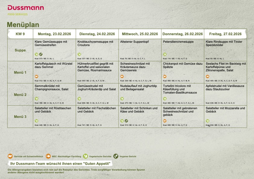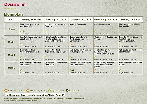 In calendar week 09 (February 23rd–March 1st 2026) the following lunch dishes await you there: